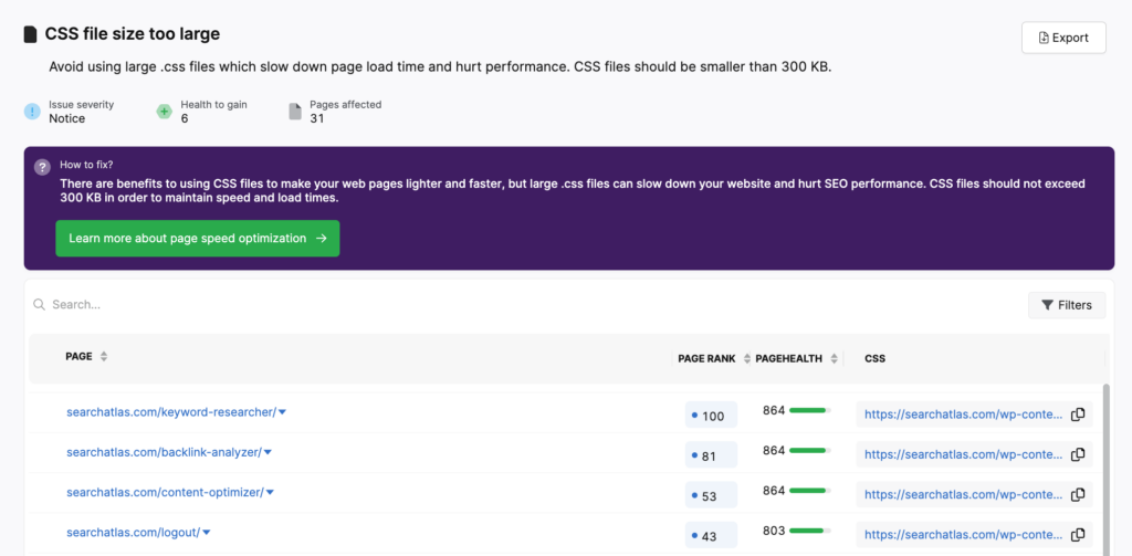 That’s why specific CSS issues will be flagged in the Search Atlas site auditor if they are found on a page.
