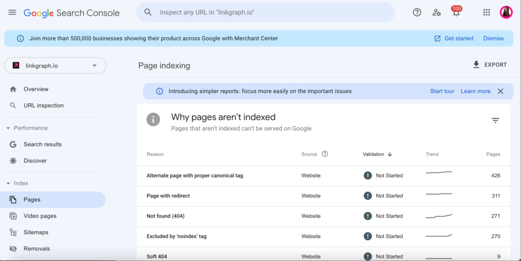 You’ll find a display summarizing various errors related to indexing. Messages about 404s or 500 errors will appear in this list.